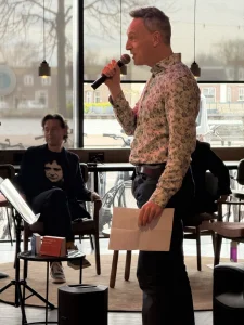 En precies op de juiste momenten werd die gelaagdheid luchtiger gemaakt door Cabaret Uithoorn. Dirk de Lange en Idsge Postma, onder de scherpe en speelse regie van Ton Sol, brachten komische intermezzo’s die perfect aansloten op de sfeer. Geen losstaande sketches, maar slimme, herkenbare en soms heerlijk absurde observaties die het publiek zichtbaar ontspanden en lieten lachen – precies wanneer dat nodig was.